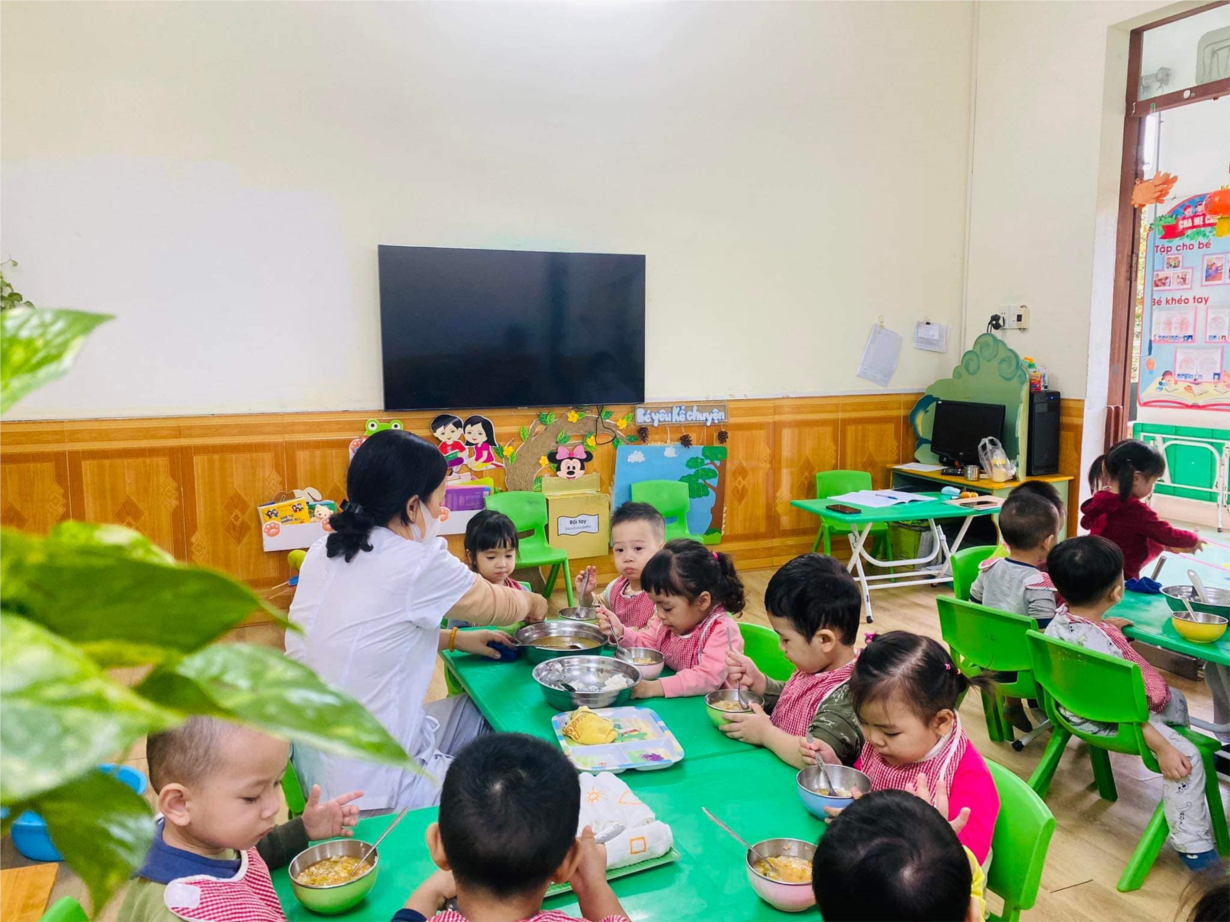 Ba mẹ hãy cùng ngắm nhìn nét đáng yêu trong giờ ăn của các con yêu lớp nhà trẻ D2 nha