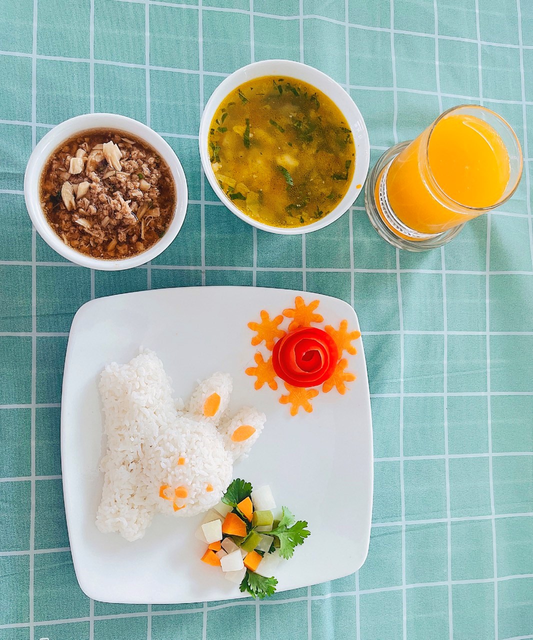 Với những hình thù ngộ nghĩnh hay sự chăm sóc và yêu thương trong từng món ăn được chuẩn bị cầu kỳ và đẹp mắt. Với sự khéo léo cũng như chu đáo của các cô nhà bếp cùng các cô giáo đã chuẩn bị cho các con một bữa cơm tuyệt vời, làm cho bạn nào cũng thích thú, hào hứng và vui vẻ trong bữa ăn