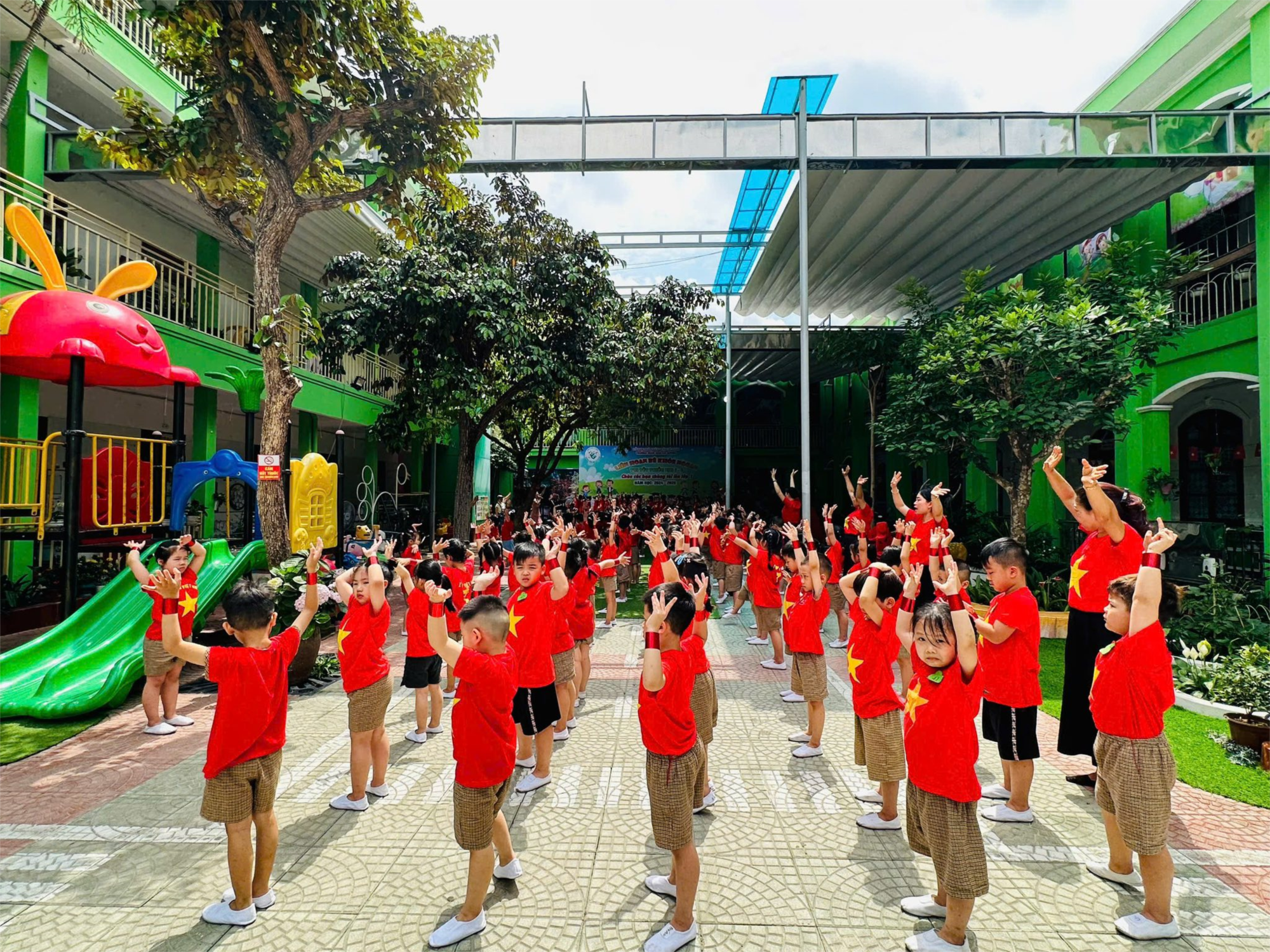 Trường Mầm non An Dương rộn ràng rực sắc áo cờ đỏ