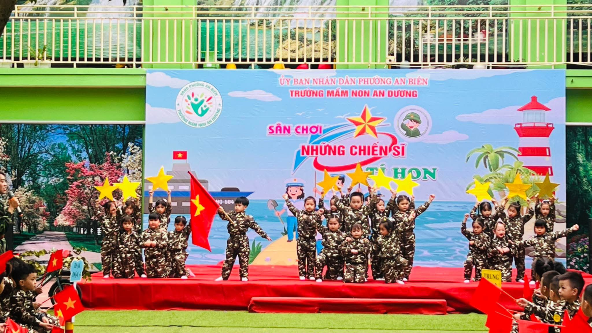 Đặc biệt, các bé còn có cơ hội được giao lưu và tham gia hoạt động cùng các chú bộ đội. Dưới sự hướng dẫn tận tình của các chú, các con được trải nghiệm những bài tập đơn giản, học thêm nhiều kỹ năng và cảm nhận tinh thần kỷ luật, đoàn kết. Đây thực sự là một hoạt động ý nghĩa, giúp các bé thêm tự tin, mạnh dạn và bồi dưỡng lòng yêu mến đối với các chú bộ đội – những người đang ngày đêm bảo vệ Tổ quốc.