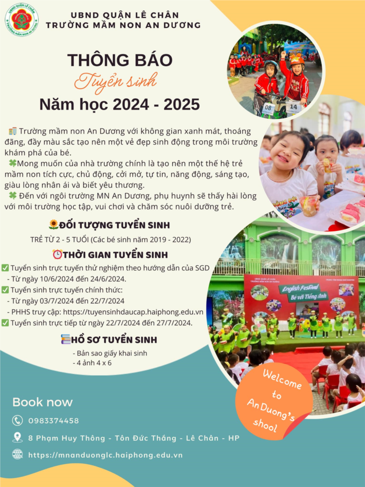 Đến với ngôi trường MN An Dương, phụ huynh sẽ thấy hài lòng với môi trường học tập , vui chơi và chăm sóc nuôi dưỡng trẻ, cụ thể: