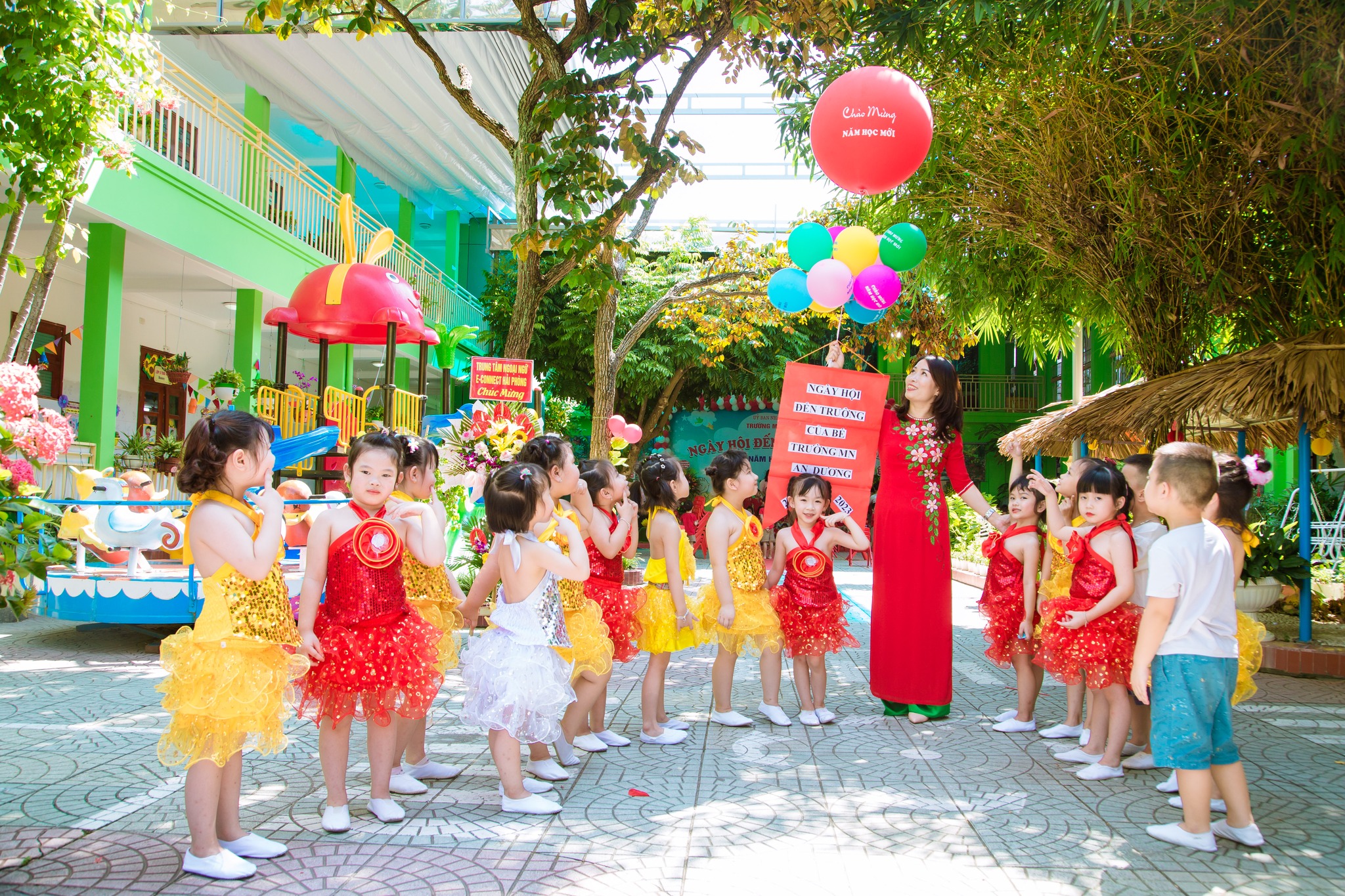 Trường mầm non An Dương với không gian xanh mát, thoáng đãng, đầy màu sắc tạo nên một vẻ đẹp sinh động trong môi trường khám phá của bé
